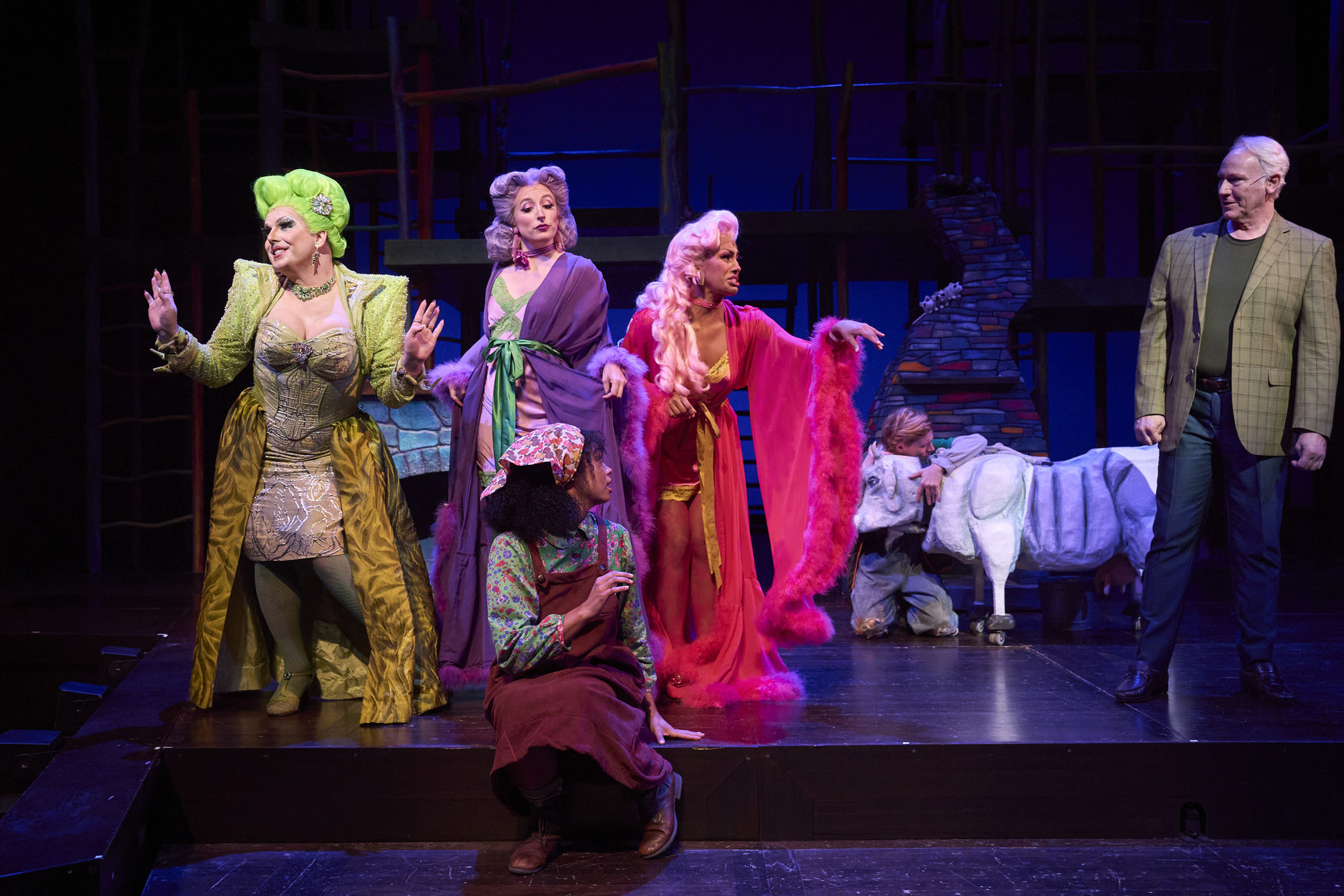 The Baker (actor Joe Wegner*) receives terrible news from Jack (actor Nic Hermick*) as The Witch (actor Jillian Kates*), Cinderella (actor RhonniRose Mantilla*) and Little Red (actor Jaedynn Latter) look on in the Great Lakes Theater production of Into the Woods at the Hanna Theatre, Playhouse Square, running through November 10. (Photo by Roger Mastroianni)