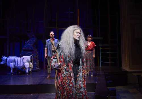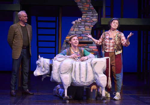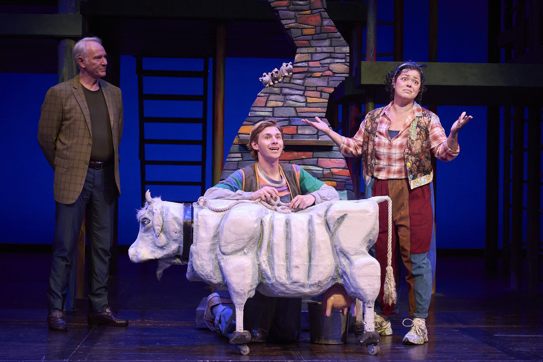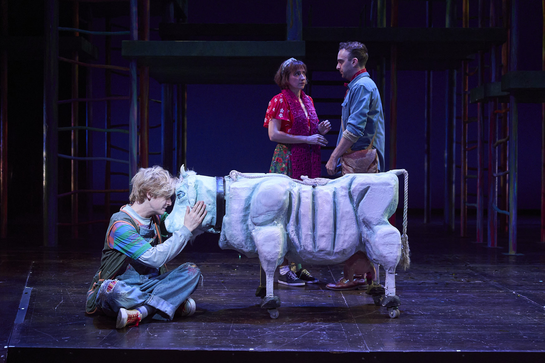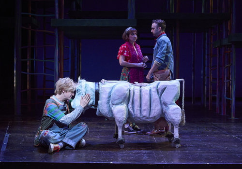Jack (actor Nic Hermick*) says goodbye to Milky White as The Baker's Wife (actor Jodi Dominick*) and The Baker (actor Joe Wegner*) contemplate their actions in the Great Lakes Theater production of Into the Woods at the Hanna Theatre, Playhouse Square, running through November 10. (Photo by Roger Mastroianni)