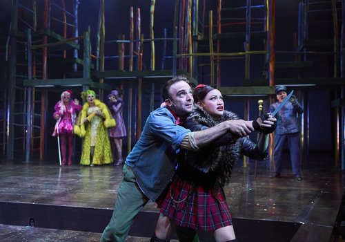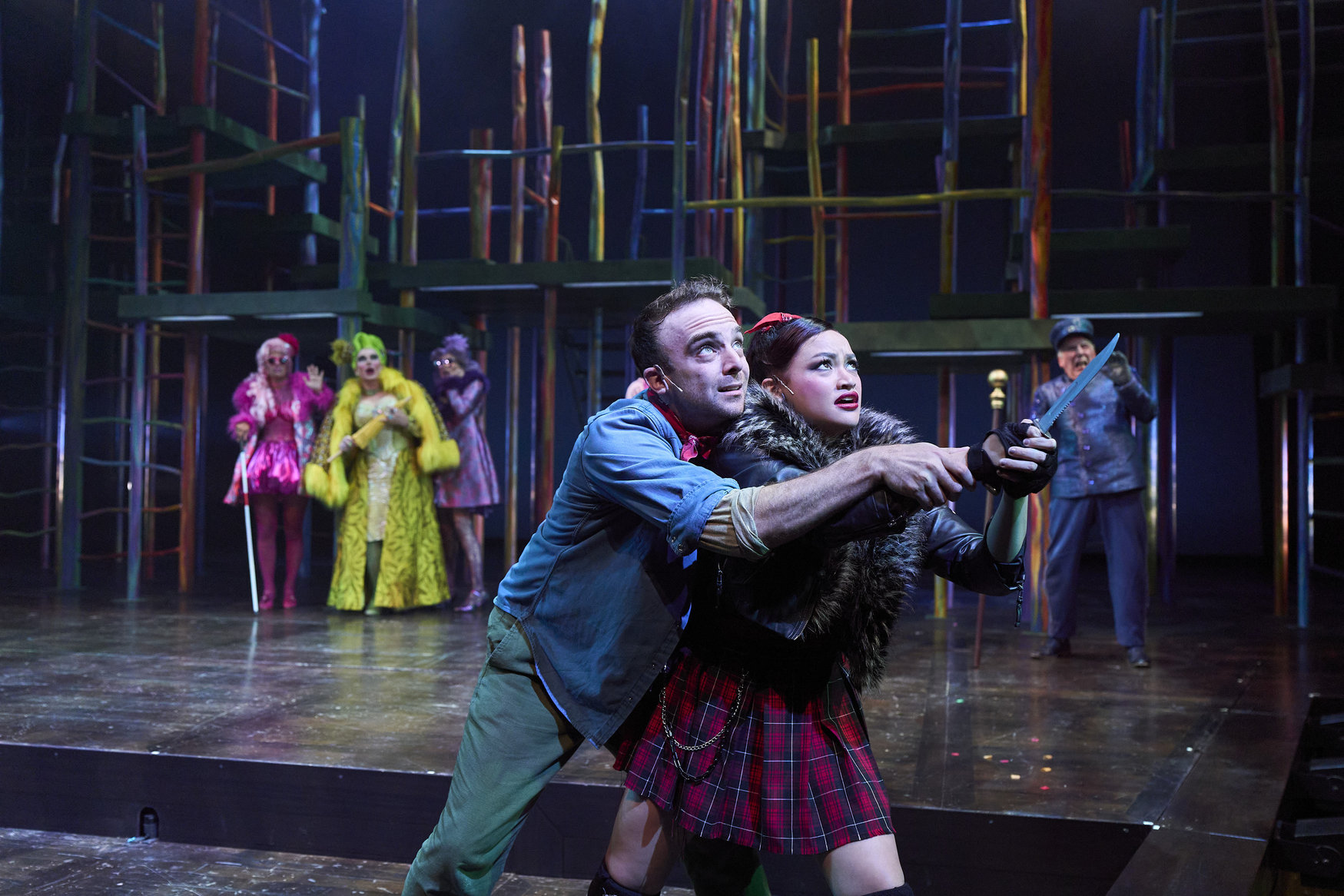The Witch (actor Jillian Kates*) shares it's the last midnight as Jack (actor Nic Hermick*) reacts in the Great Lakes Theater production of Into the Woods at the Hanna Theatre, Playhouse Square, running through November 10. (Photo by Roger Mastroianni)