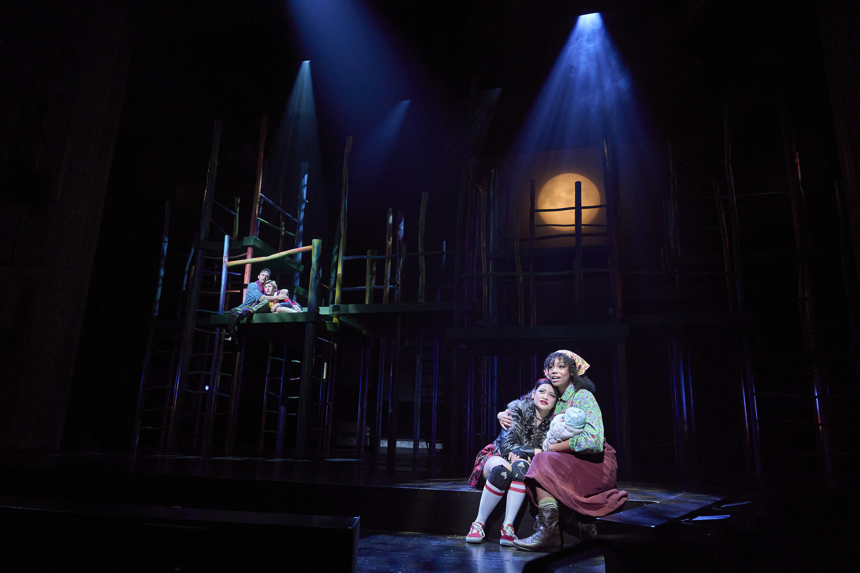 The Baker (actor Joe Wegner*), Jack (actor, Nic Hermick*), Cinderella (actor RhonniRose Mantilla*) and Little Red (actor Jaedynn Latter) know they are not alone in the Great Lakes Theater production of Into the Woods at the Hanna Theatre, Playhouse Square, running through November 10. (Photo by Roger Mastroianni)