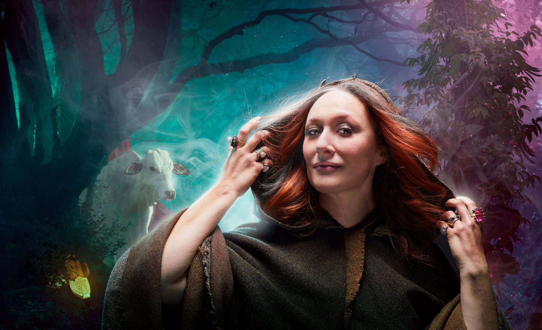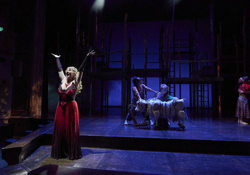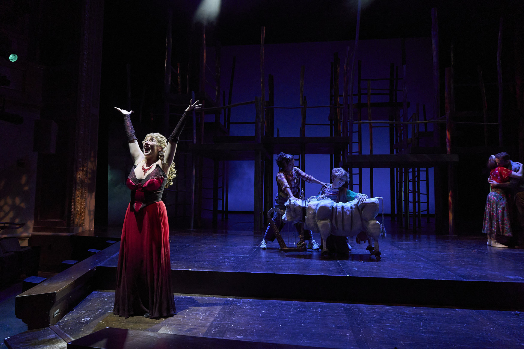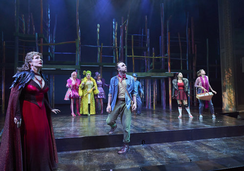 The Witch (actor Jillian Kates*) rejoices in her transformation in the Great Lakes Theater production of Into the Woods at the Hanna Theatre, Playhouse Square, running through November 10. Also featured from left to right: Jessie Cope Miller*, Nic Hermick*, Jodi Dominick* and Joe Wegner. (Photo by Roger Mastroianni)