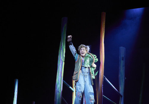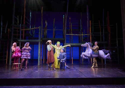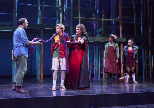 Jack (actor, Nic Hermick*) proudly shows off his treasure from climbing the beanstalk in the Great Lakes Theater production of Into the Woods at the Hanna Theatre, Playhouse Square, running through November 10. (Photo by Roger Mastroianni)