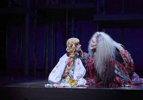Rapunzel (actor, Ángela Utrera*) and The Witch (actor, Jillian Kates*) come to terms in the Great Lakes Theater production of Into the Woods at the Hanna Theatre, Playhouse Square, running through November 10. (Photo by Roger Mastroianni)