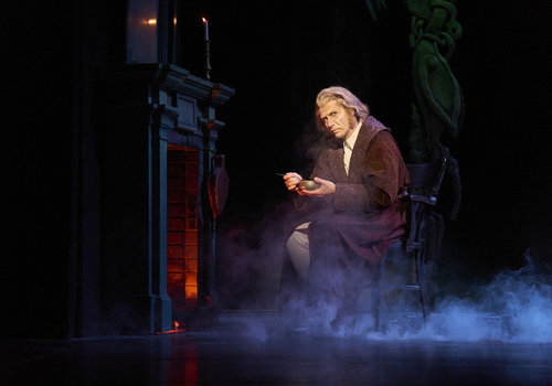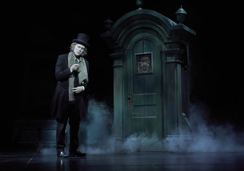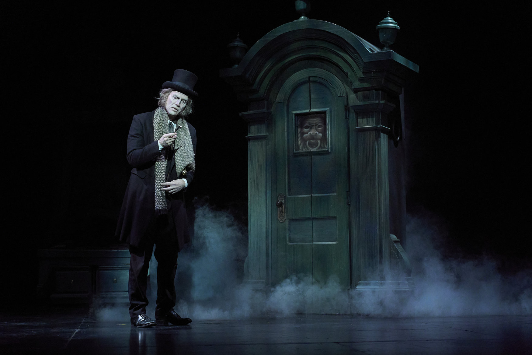 Scrooge (actor, Nick Steen*) returns home on Christmas Eve in Great Lakes Theater’s production of Charles Dickens’ holiday classic A CHRISTMAS CAROL onstage at the Mimi Ohio Theatre, Playhouse Square through December 22. (Photography by Roger Mastroianni)