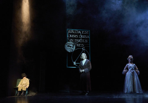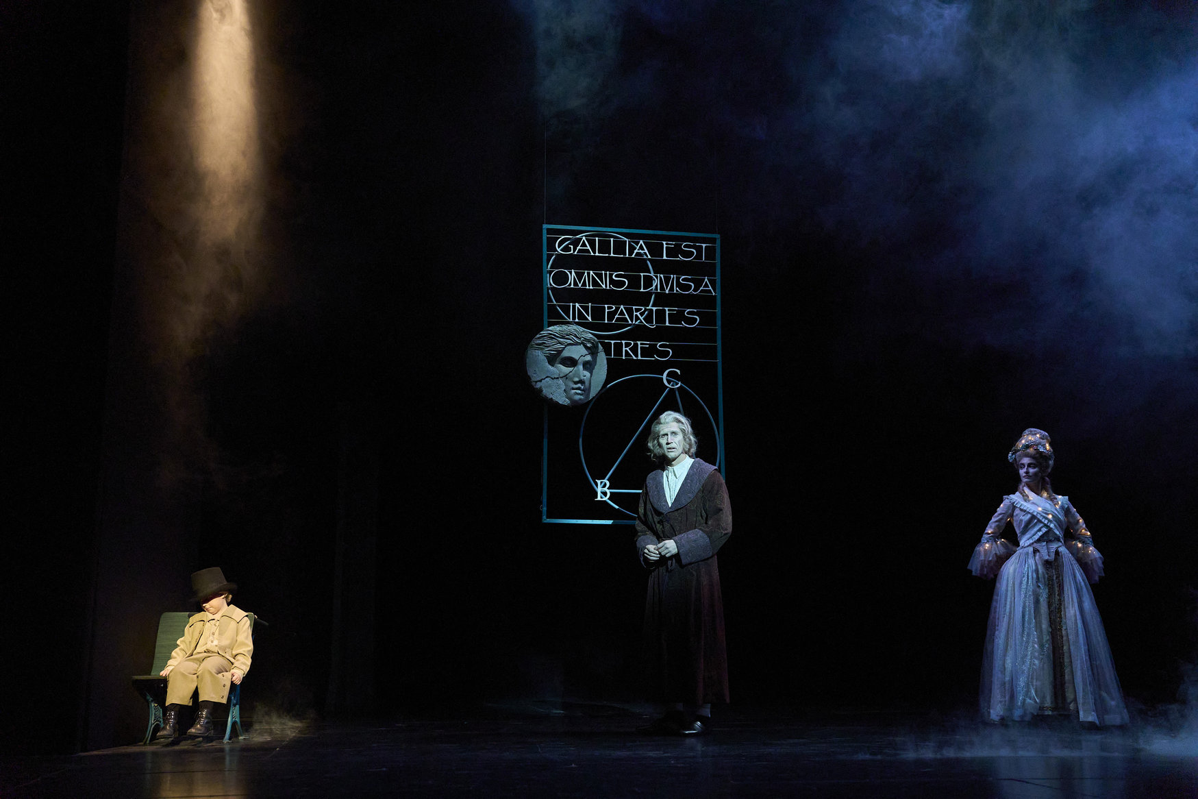 The Ghost of Christmas Past (actor, Ángela Utrera*) shares with Scrooge (actor, Nick Steen*) the memory of him as a young boy (actor, Laci Grace Classer) at boarding school in Great Lakes Theater’s production of Charles Dickens’ holiday classic A CHRISTMAS CAROL onstage at the Mimi Ohio Theatre, Playhouse Square through December 22. (Photography by Roger Mastroianni)
