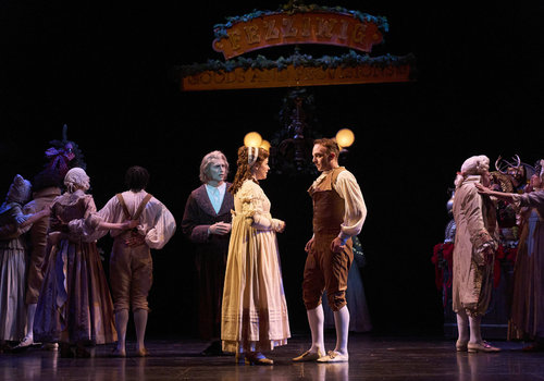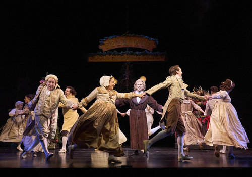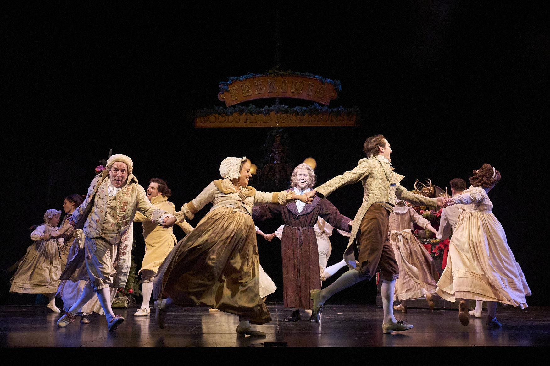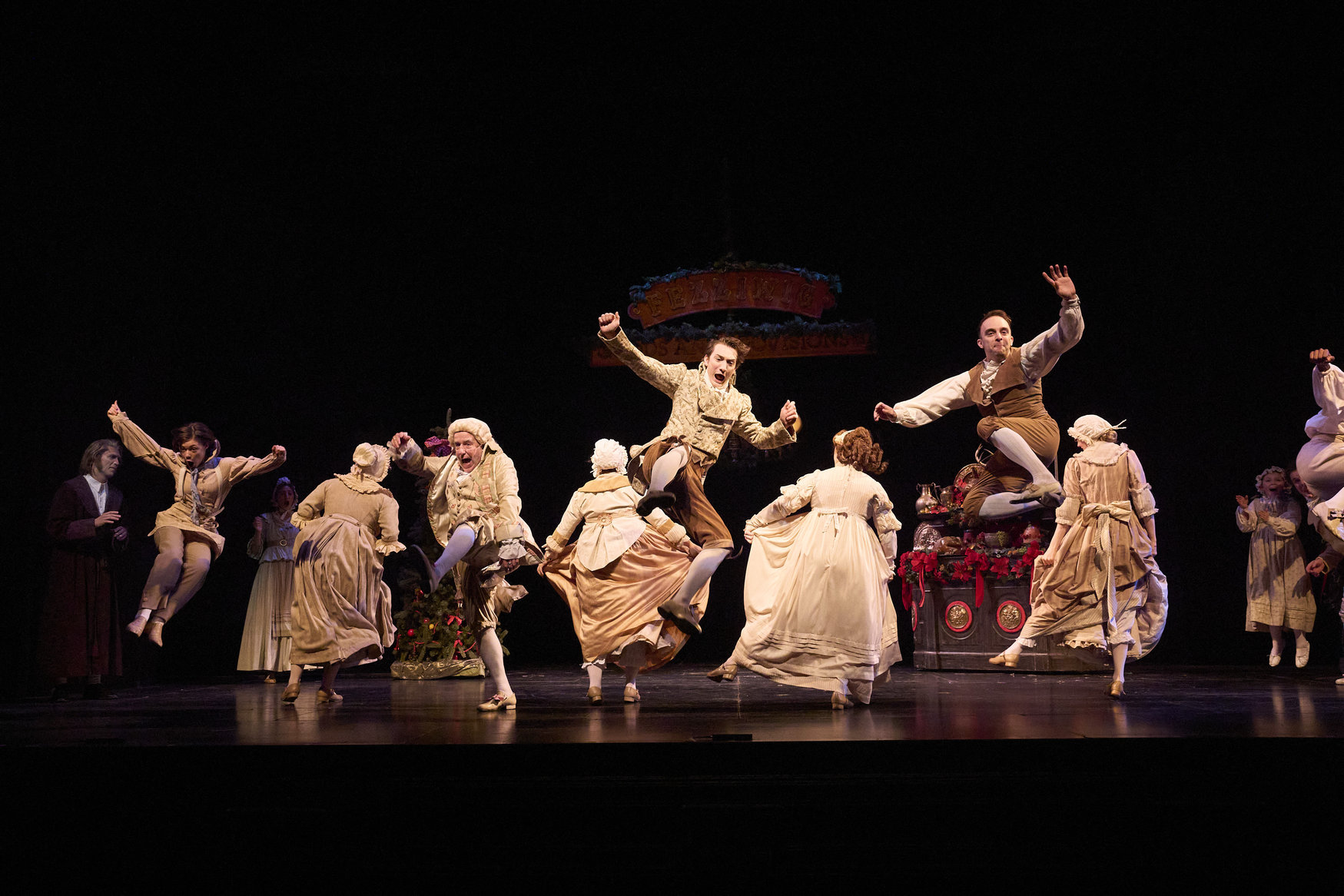 Fezziwig’s guests kick off the holiday right in Great Lakes Theater’s production of Charles Dickens’ holiday classic A CHRISTMAS CAROL onstage at the Mimi Ohio Theatre, Playhouse Square through December 22. Actors featured from L to R: Nick Steen*, Marlowe Miller, Jodi Dominick*, Jessie Cope Miller*, M.A. Taylor*, Amber Hurst Martin*, Kyle MacDonald, Laura Welsh, Joe Wegner*, Eileen Brady, Paige Lewis, Boe Wank* and Aamar-Malik Culbreth. (Photography by Roger Mastroianni)