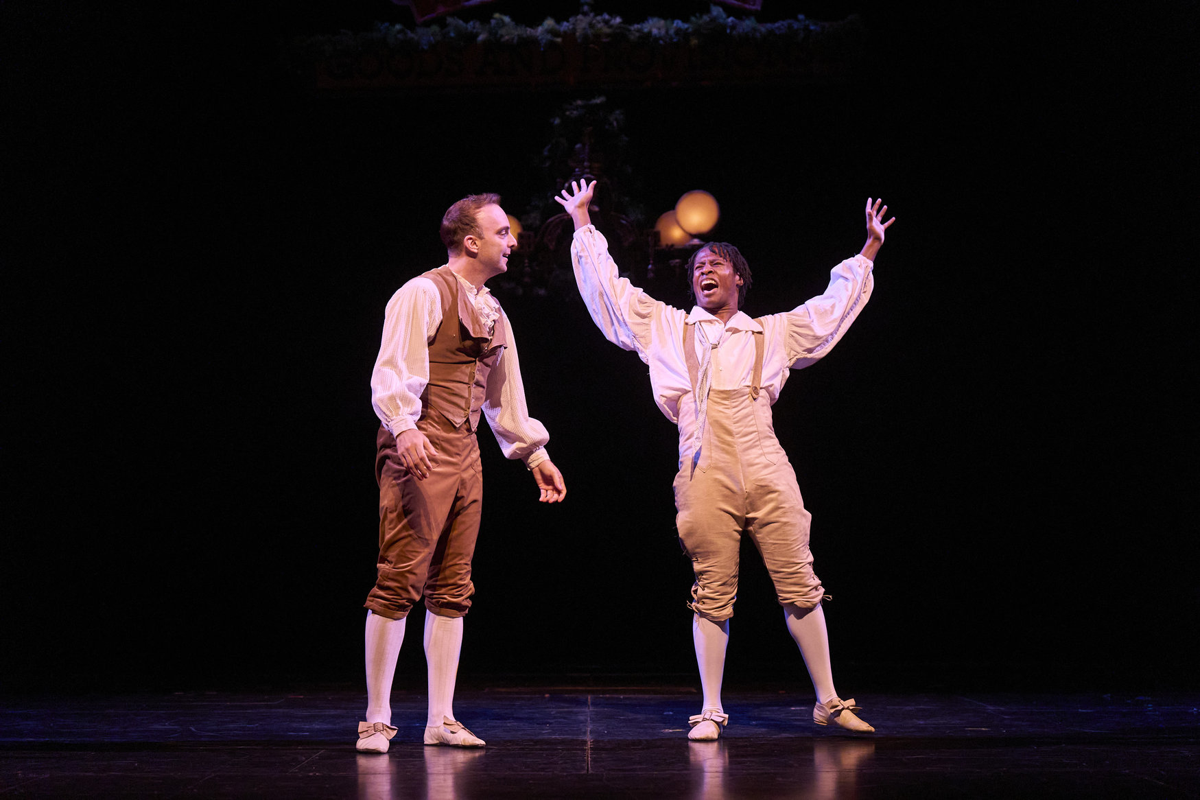 Young Scrooge (actor, Joe Wegner*) and Dick Wilkins (actor, Aamar-Malik Culbreth) relive their fantastic night at Fezziwig in Great Lakes Theater’s production of Charles Dickens’ holiday classic A CHRISTMAS CAROL onstage at the Mimi Ohio Theatre, Playhouse Square through December 22. (Photography by Roger Mastroianni)