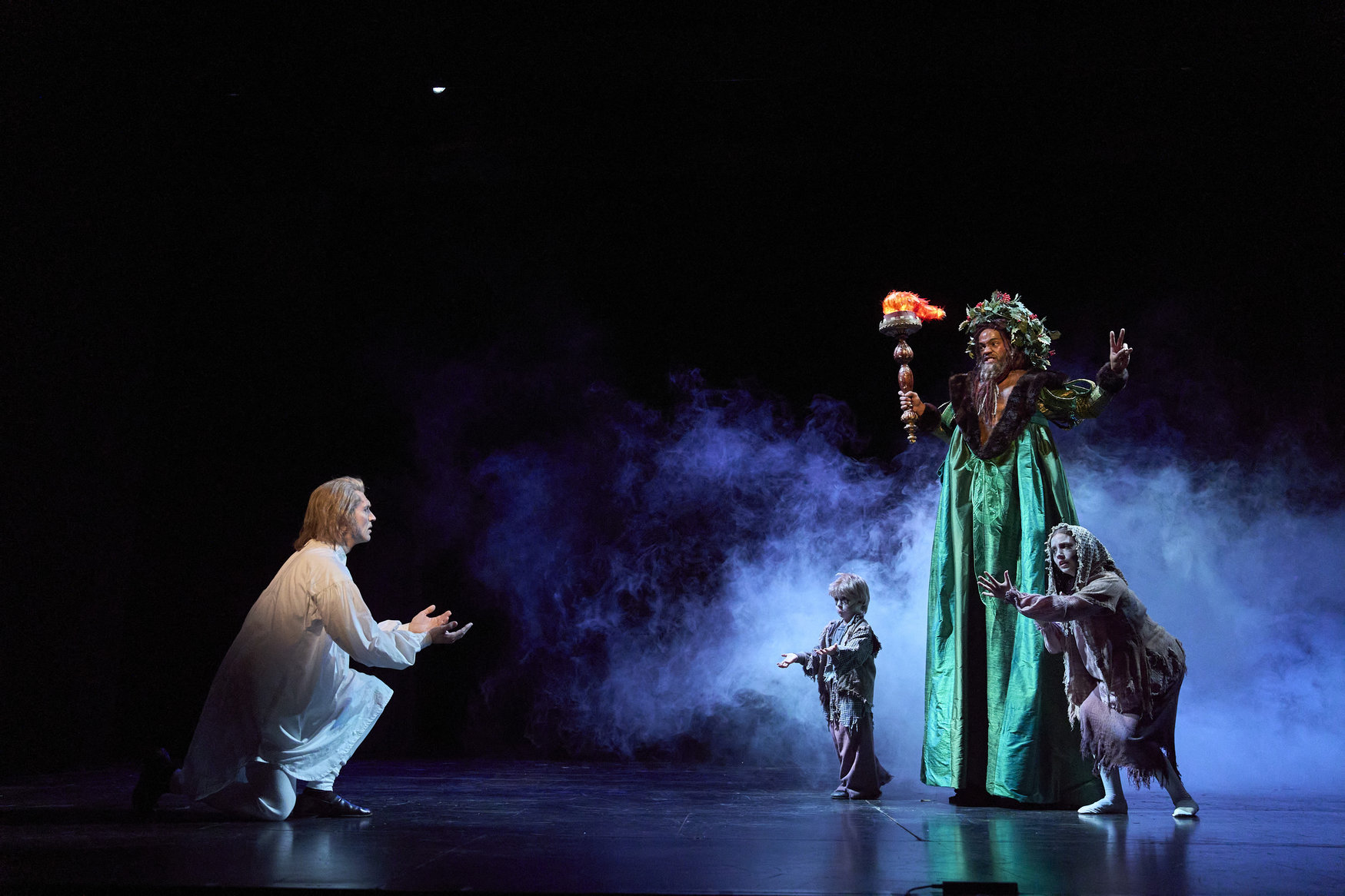 The Ghost of Christmas Present (actor, Dominique Champion*) makes an impressive and magical entrance in Great Lakes Theater’s production of Charles Dickens’ holiday classic A CHRISTMAS CAROL onstage at the Mimi Ohio Theatre, Playhouse Square through December 22. (Photography by Roger Mastroianni)