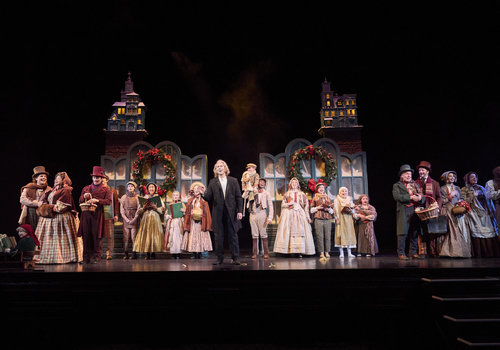 Great Lakes Theater rings in the holiday season with its annual production of Charles Dickens' holiday classic A CHRISTMAS CAROL onstage at the Mimi Ohio Theatre, Playhouse Square, which runs through December 22. Actors featured from L to R: Jodi Dominick*, Aamar-Malik Culbreth, James Alexander Rankin*, Laura Welsh*, Paige Lewis, Jeffrey C. Hawkins*, Marlowe Miller, Laci Grace Glasser, Joe Wegner*, Morgan Lehman, M.A. Taylor*, Eileen Brady, Nick Steen*, Anthony Patrick Kenney, Madeline Curtis, Kyle Arzaga, Ada Shapiro, Kyle MacDonald, Boe Wank*, Fiona Thackaberry Stevens, Ángela Utrera*, Sutton Garver, Amber Hurst Martin* and Dominique Champion*. (Photography by Roger Mastroianni)