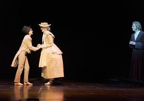 Young Scrooge (actor, Joe Wegner*) shares a tender moment with Belle (actor, Laura Welsh*) as Ebenezer Scrooge (actor, Nick Steen*) looks on in Great Lakes Theater’s production of Charles Dickens’ holiday classic A CHRISTMAS CAROL onstage at the Mimi Ohio Theatre, Playhouse Square through December 22. Other actors featured from L to R: Jodi Dominick*, Boe Wank*, Eileen Brady, Aamar-Malik Culbreth, M.A. Taylor* and Jessie Cope Miller*. (Photography by Roger Mastroianni)