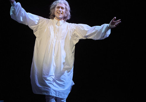 Scrooge (actor, Nick Steen*) is elated at his second chance in Great Lakes Theater’s production of Charles Dickens’ holiday classic A CHRISTMAS CAROL onstage at the Mimi Ohio Theatre, Playhouse Square through December 22. (Photography by Roger Mastroianni)