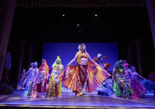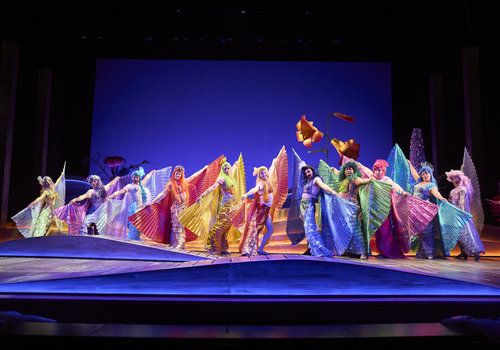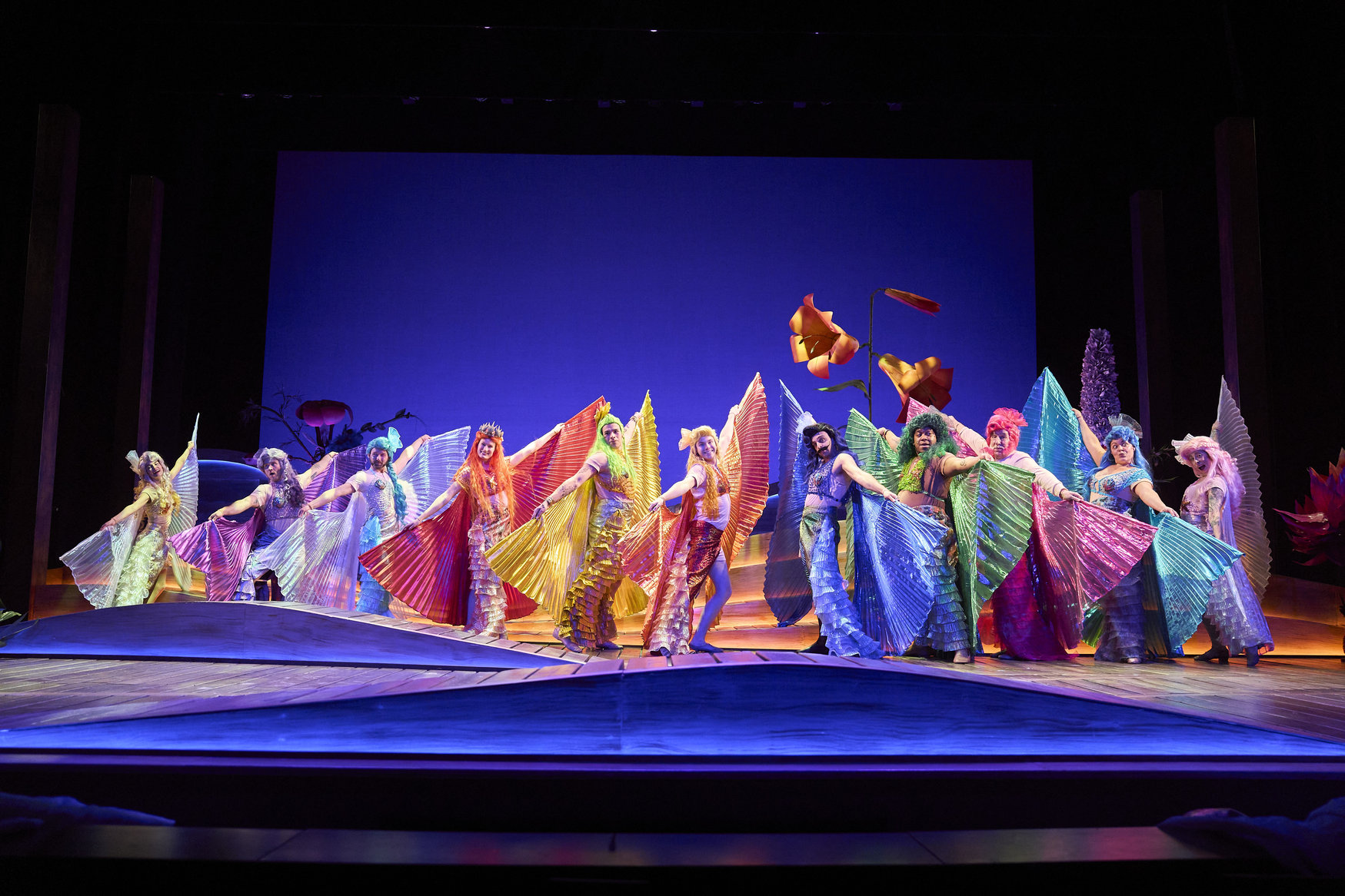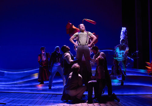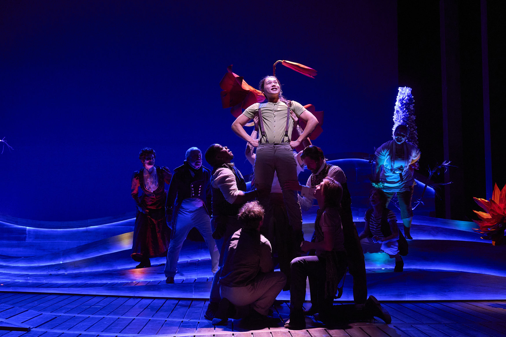 A grand finale for the mermaids (actors from left to right, Ángela Utrera*, Evan Stevens*, James Alexander Rankin*, Grayson Heyl*, Jeremy Gallardo*, Nic Scott Hermick*, Joe Wegner*, Dar’Jon Marquise Bentley, M.A. Taylor*, Jessie Cope Miller* and Theo Allyn*) in the Great Lakes Theater production of Peter and the Starcatcher at the Hanna Theatre, Playhouse Square, running through March 2. (Photo by Roger Mastroianni) *Member Actors' Equity Association, the Union of Professional Actors and Stage Managers in the United States