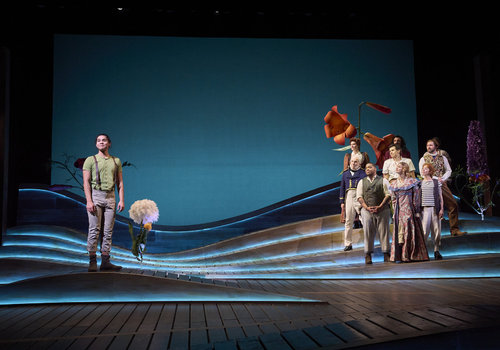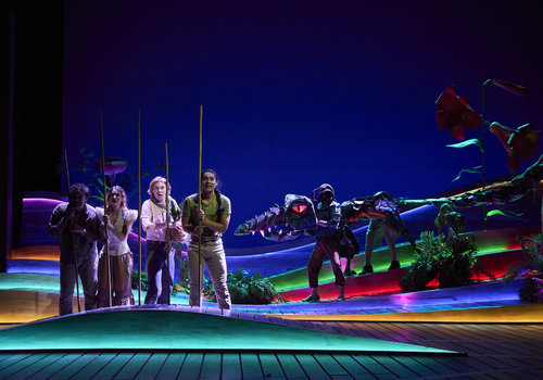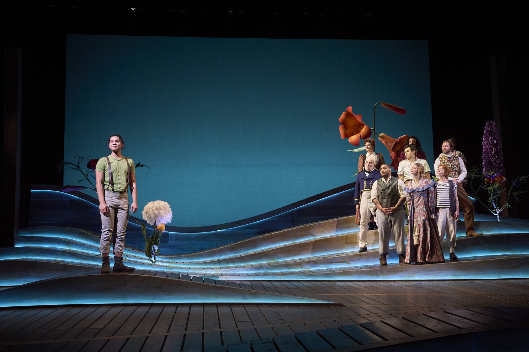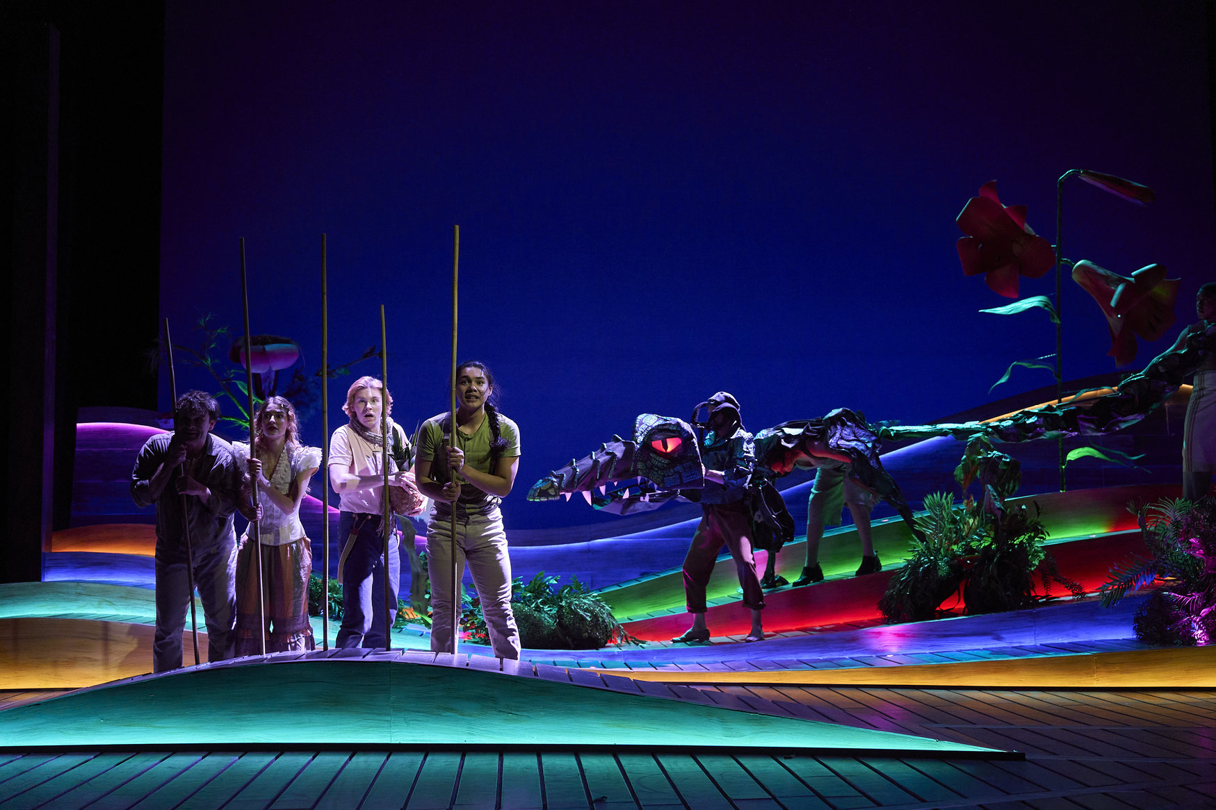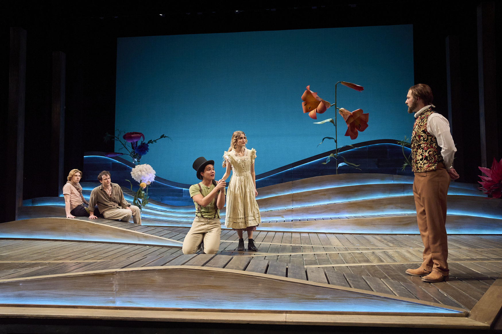 A grand finale for the mermaids (actors from left to right, Ángela Utrera*, Evan Stevens*, James Alexander Rankin*, Grayson Heyl*, Jeremy Gallardo*, Nic Scott Hermick*, Joe Wegner*, Dar’Jon Marquise Bentley, M.A. Taylor*, Jessie Cope Miller* and Theo Allyn*) in the Great Lakes Theater production of Peter and the Starcatcher at the Hanna Theatre, Playhouse Square, running through March 2. (Photo by Roger Mastroianni) *Member Actors' Equity Association, the Union of Professional Actors and Stage Managers in the United States