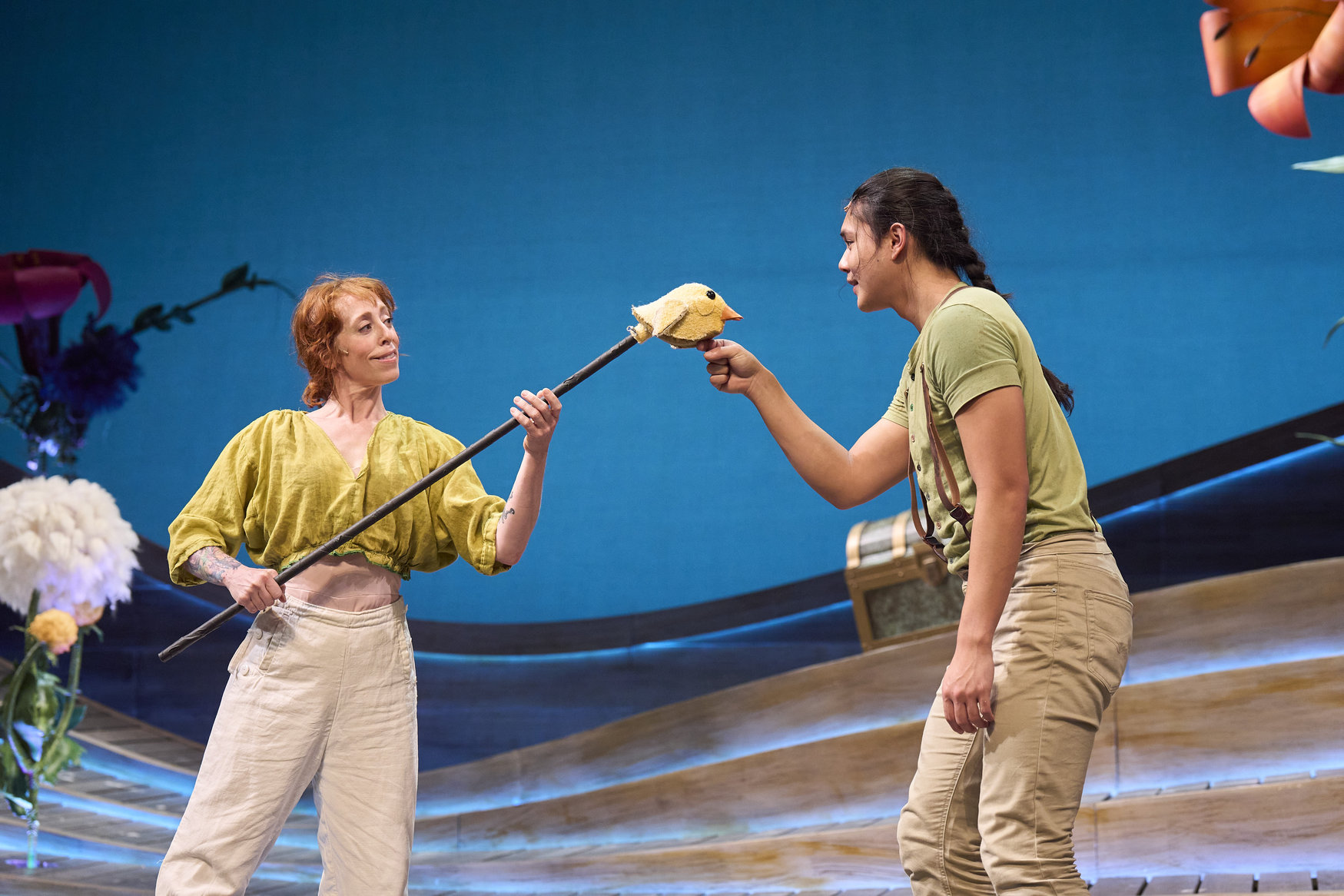 Boy (actor, Benjamin Michael Hall*) meets Bird (actor, Theo Allyn*) in the Great Lakes Theater production of Peter and the Starcatcher at the Hanna Theatre, Playhouse Square, running through March 2. (Photo by Roger Mastroianni) *Member Actors' Equity Association, the Union of Professional Actors and Stage Managers in the United States