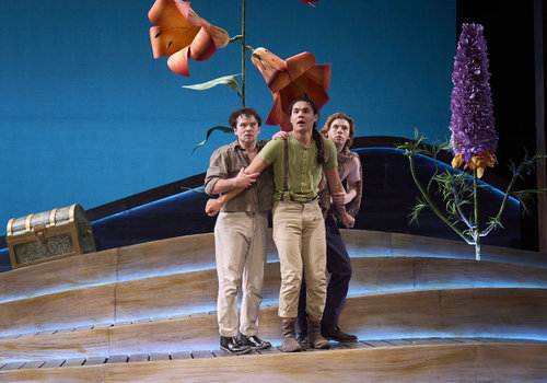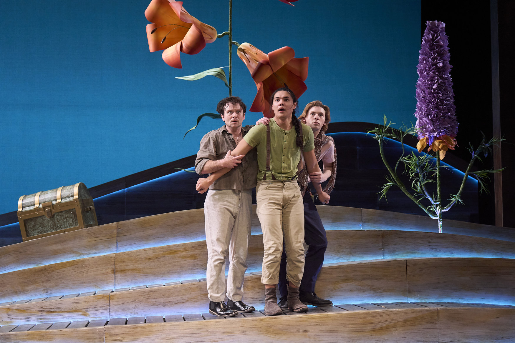 GLT_020725_861: Boy (actor, Benjamin Michael Hall*), Prentiss (actor, Evan Stevens*) and Ted (actor, Nic Scott Hermick*) fear what’s next in the Great Lakes Theater production of Peter and the Starcatcher at the Hanna Theatre, Playhouse Square, running through March 2. (Photo by Roger Mastroianni) *Member Actors' Equity Association, the Union of Professional Actors and Stage Managers in the United States