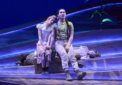 Boy (actor, Benjamin Michael Hall*) and Molly (actor, Ángela Utrera*) make a pact in the Great Lakes Theater production of Peter and the Starcatcher at the Hanna Theatre, Playhouse Square, running through March 2. Also featured from left to right, Jeremy Gallardo*, Dar'Jon Marquise Bentley, Joe Wegner* and Theo Allyn*. (Photo by Roger Mastroianni) *Member Actors' Equity Association, the Union of Professional Actors and Stage Managers in the United States