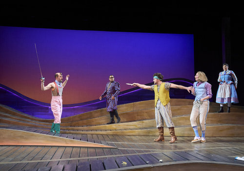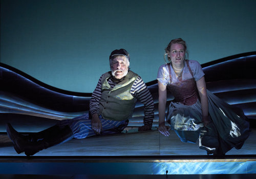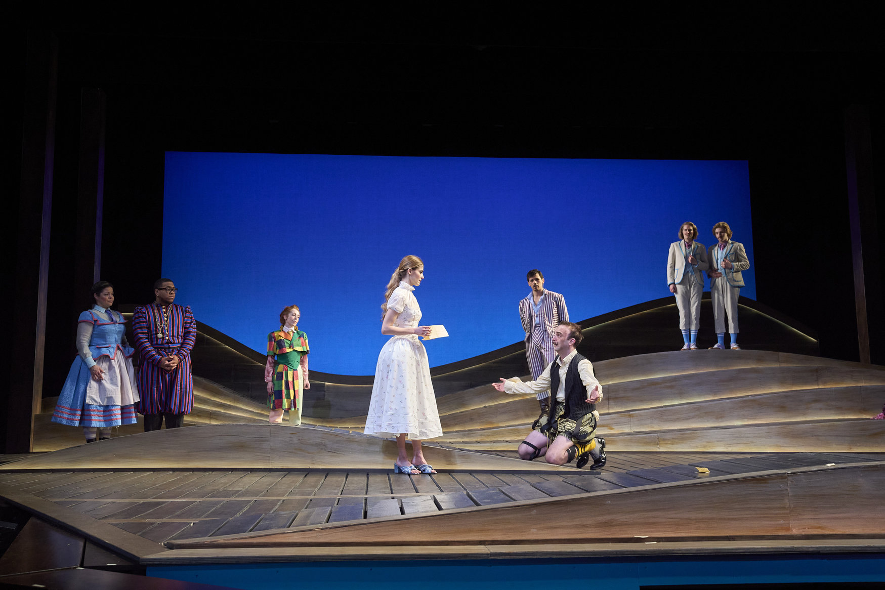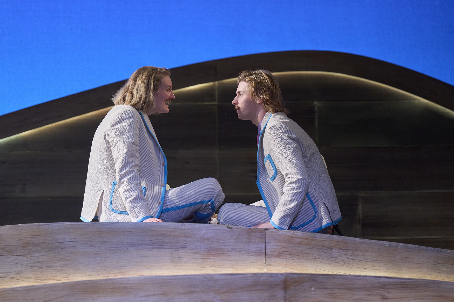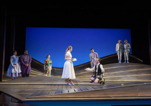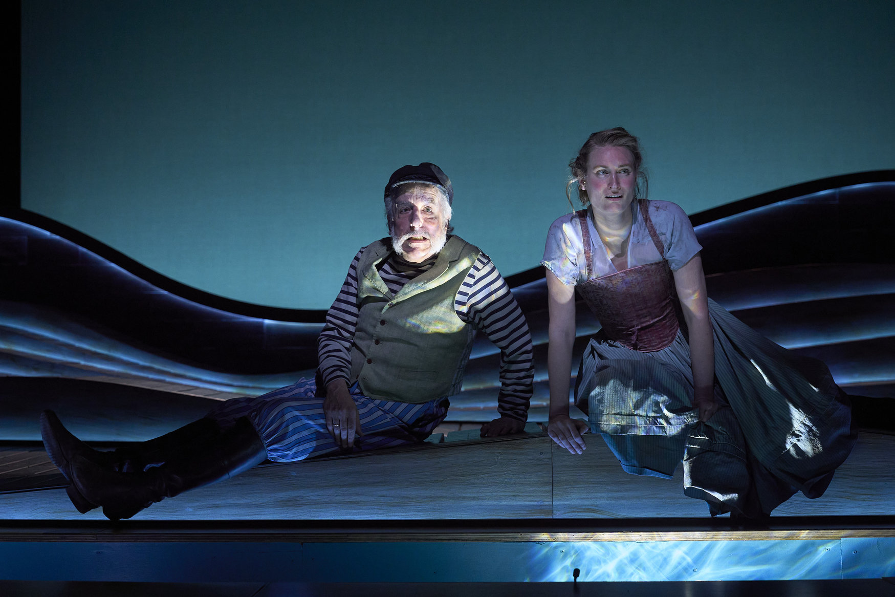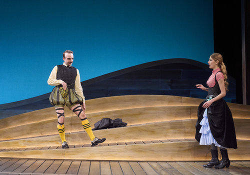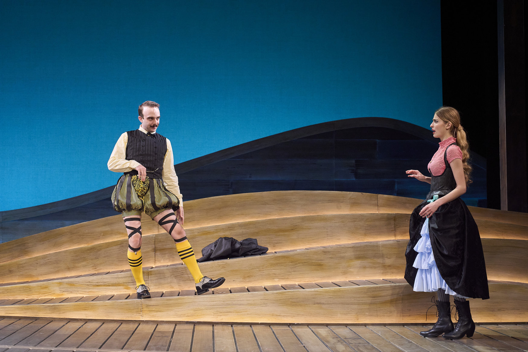 The captain (actor, M.A. Taylor*) informs Viola (actor, Grayson Heyl*) that their shipwrecked boat has landed in Illyria in the Great Lakes Theater production of Twelfth Night at the Hanna Theatre, Playhouse Square, running through April 6. (Photo by Roger Mastroianni) *Member Actors' Equity Association, the Union of Professional Actors and Stage Managers in the United States