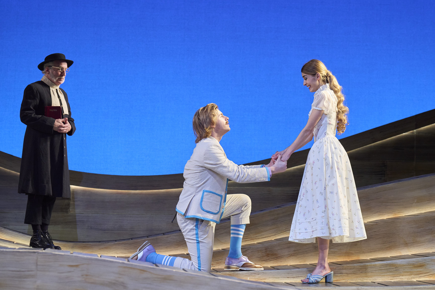 Olivia (actor, Ángela Utrera*) and Sebastian (actor, Nic Scott Hermick*) are married by a priest (actor, M.A. Taylor*) in the Great Lakes Theater production of Twelfth Night at the Hanna Theatre, Playhouse Square, running through April 6. (Photo by Roger Mastroianni) *Member Actors' Equity Association, the Union of Professional Actors and Stage Managers in the United States