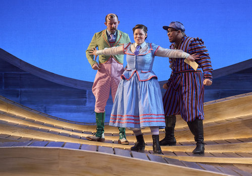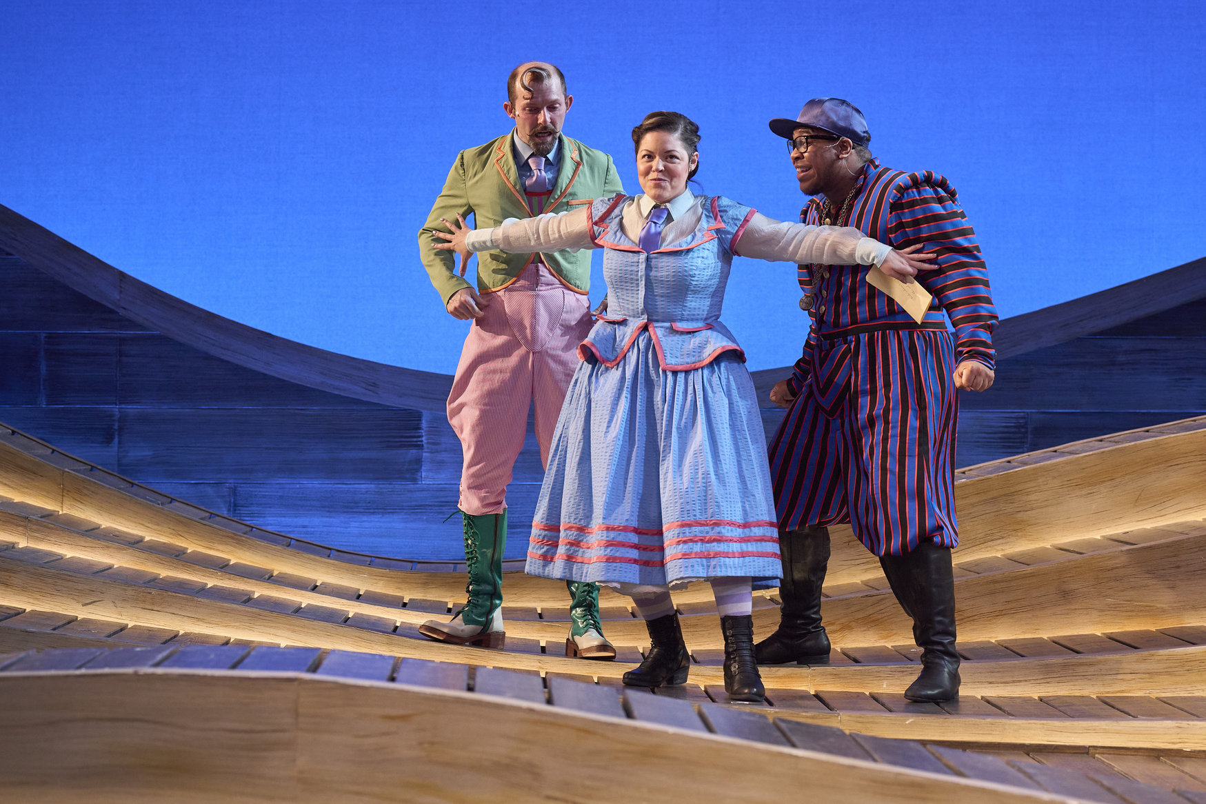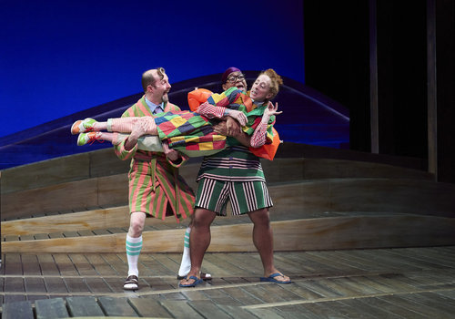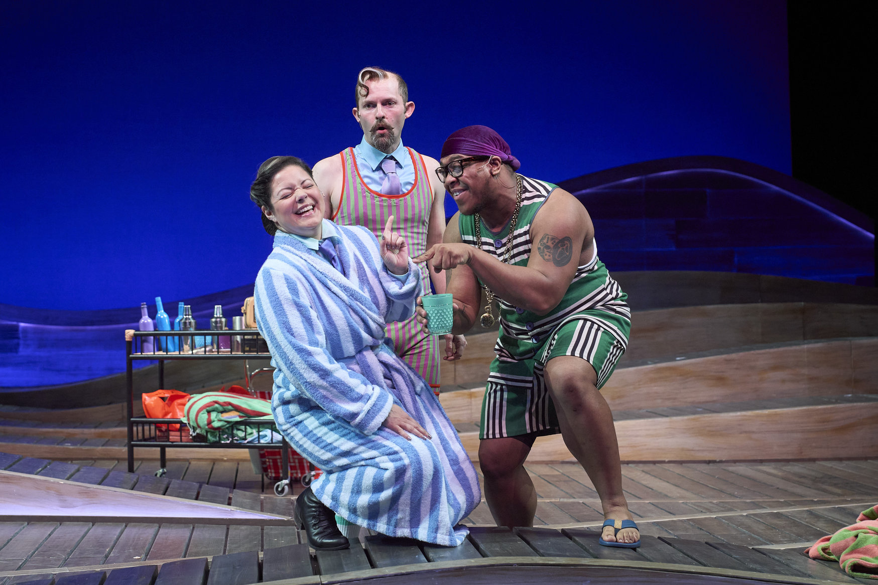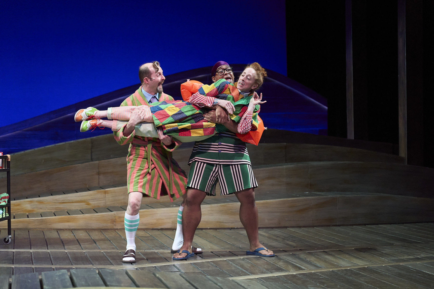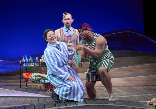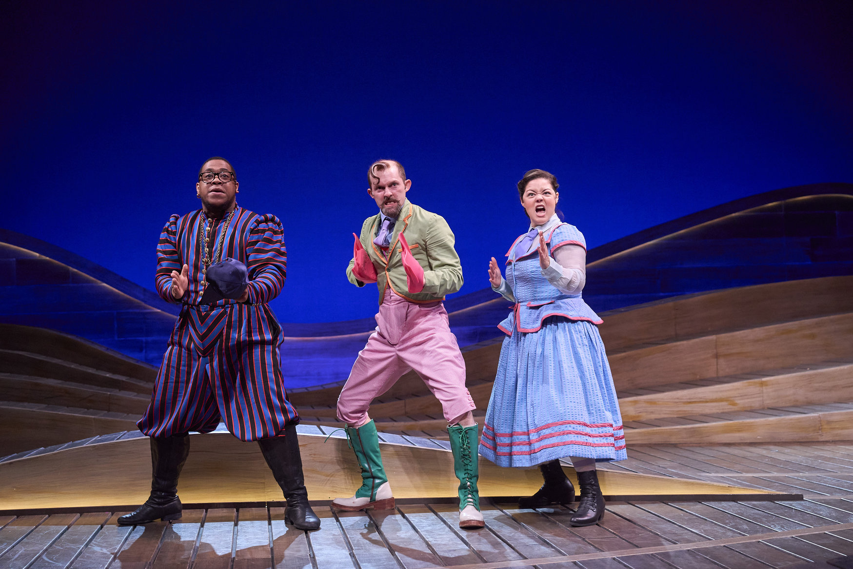 Feste (actor, Theo Allyn*) is reunited with Sir Toby Belch (actor, Dar’Jon Marquise Bentley) and Sir Andrew Aguecheek (actor, James Alexander Rankin*) in the Great Lakes Theater production of Twelfth Night at the Hanna Theatre, Playhouse Square, running through April 6. (Photo by Roger Mastroianni) *Member Actors' Equity Association, the Union of Professional Actors and Stage Managers in the United States