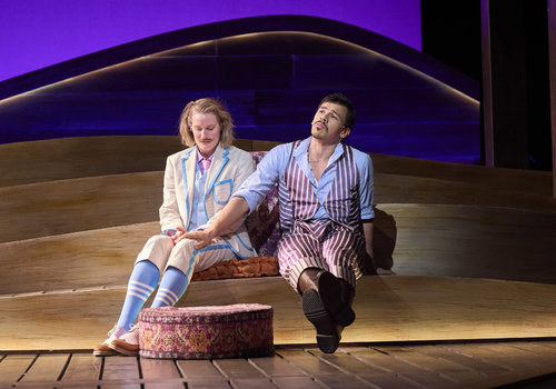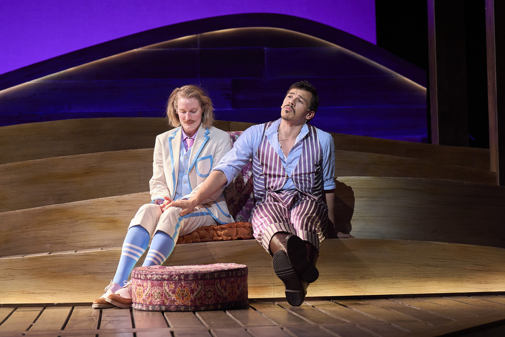 Orsino (actor, Jeremy Gallardo*) shares some brotherly affection with Cesario (actor, Grayson Heyl*) in the Great Lakes Theater production of Twelfth Night at the Hanna Theatre, Playhouse Square, running through April 6. (Photo by Roger Mastroianni) *Member Actors' Equity Association, the Union of Professional Actors and Stage Managers in the United States