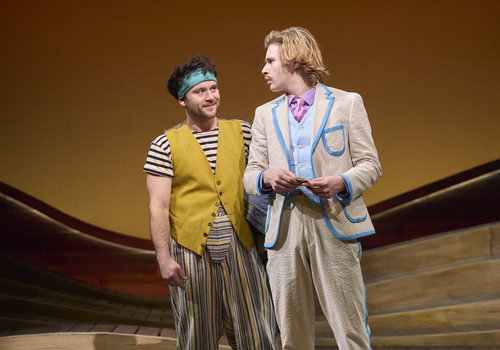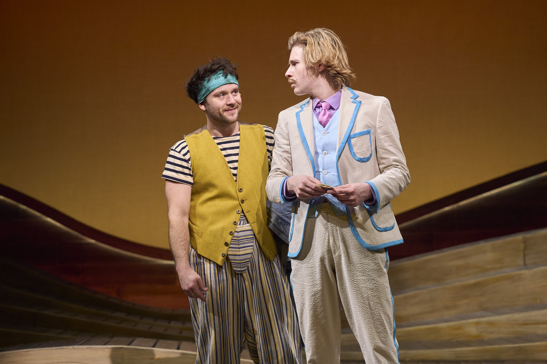 Sebastian (actor, Nic Scott Hermick*) and Antonio (actor, Evan Stevens*) figure out their next steps in Illyria in the Great Lakes Theater production of Twelfth Night at the Hanna Theatre, Playhouse Square, running through April 6. (Photo by Roger Mastroianni) *Member Actors' Equity Association, the Union of Professional Actors and Stage Managers in the United States
