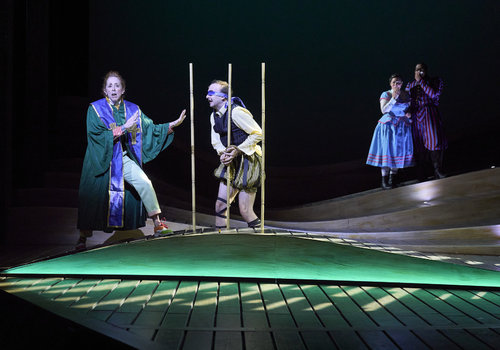 Malvolio (actor, Joe Wegner*) pines as Sir Toby Belch (actor, Dar’Jon Marquise Bentley), Maria (actor, Jessie Cope Miller*) and Sir Andrew Aguecheek (actor, James Alexander Rankin*) watch their plot unfold in the Great Lakes Theater production of Twelfth Night at the Hanna Theatre, Playhouse Square, running through April 6. (Photo by Roger Mastroianni) *Member Actors' Equity Association, the Union of Professional Actors and Stage Managers in the United States