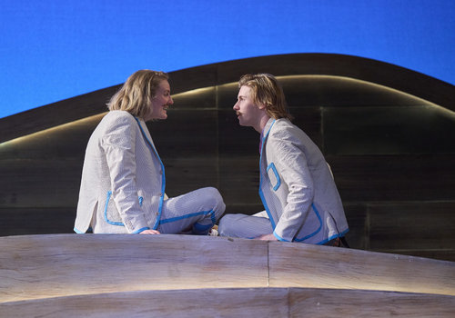 Viola (actor, Grayson Heyl*) and Sebastian (actor, Nic Scott Hermick*) make up for lost time in the Great Lakes Theater production of Twelfth Night at the Hanna Theatre, Playhouse Square, running through April 6. (Photo by Roger Mastroianni) *Member Actors' Equity Association, the Union of Professional Actors and Stage Managers in the United States