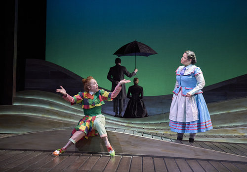 Olivia (actor, Ángela Utrera*) is shocked to see Malvolio (actor, Joe Wegner*) presented in such a way in the Great Lakes Theater production of Twelfth Night at the Hanna Theatre, Playhouse Square, running through April 6. (Photo by Roger Mastroianni) *Member Actors' Equity Association, the Union of Professional Actors and Stage Managers in the United States