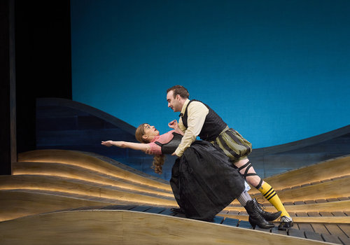 Malvolio (actor, Joe Wegner*) woos Olivia (actor, Ángela Utrera*) in the Great Lakes Theater production of Twelfth Night at the Hanna Theatre, Playhouse Square, running through April 6. (Photo by Roger Mastroianni) *Member Actors' Equity Association, the Union of Professional Actors and Stage Managers in the United States