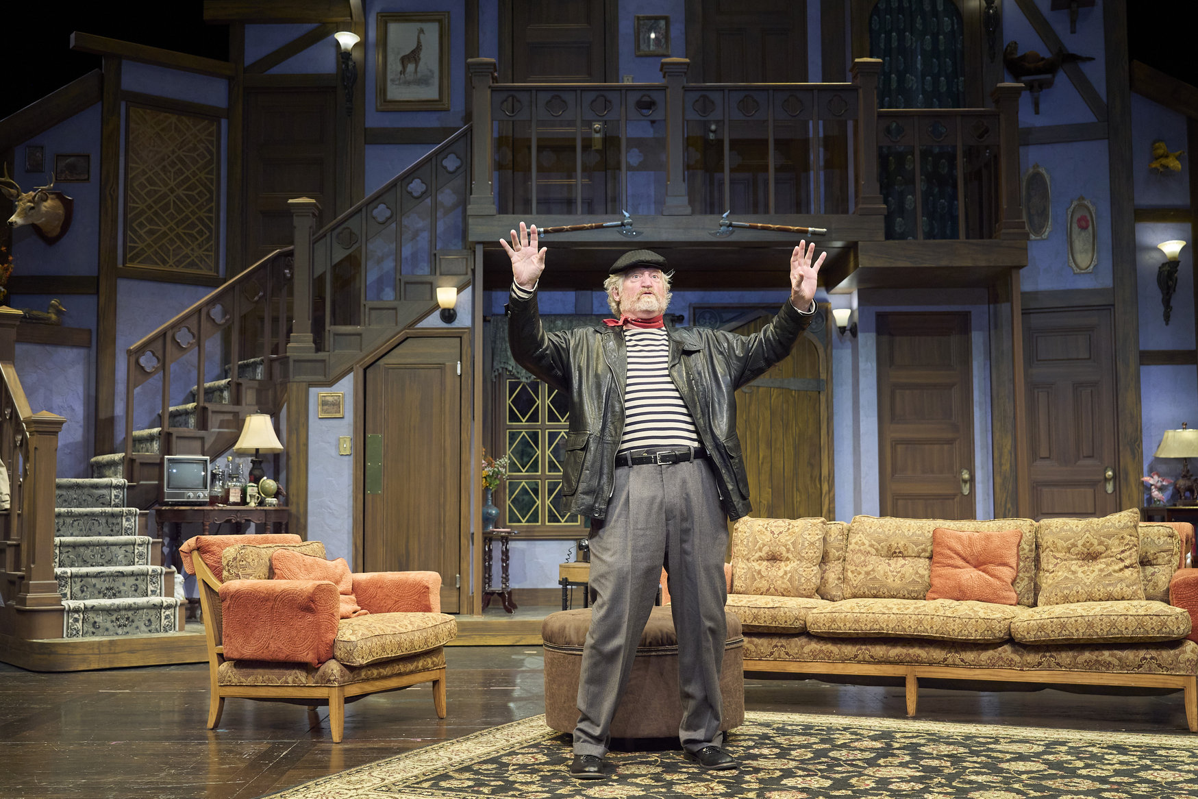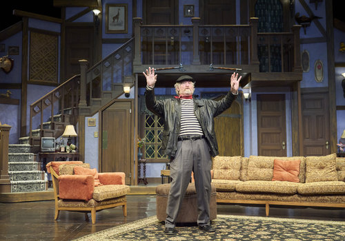 Selsdon (actor, David Anthony Smith*) takes center stage for his scene in the Great Lakes Theater production of Noises Off at the Hanna Theatre, Playhouse Square, running through May 18. (Photo by Roger Mastroianni)