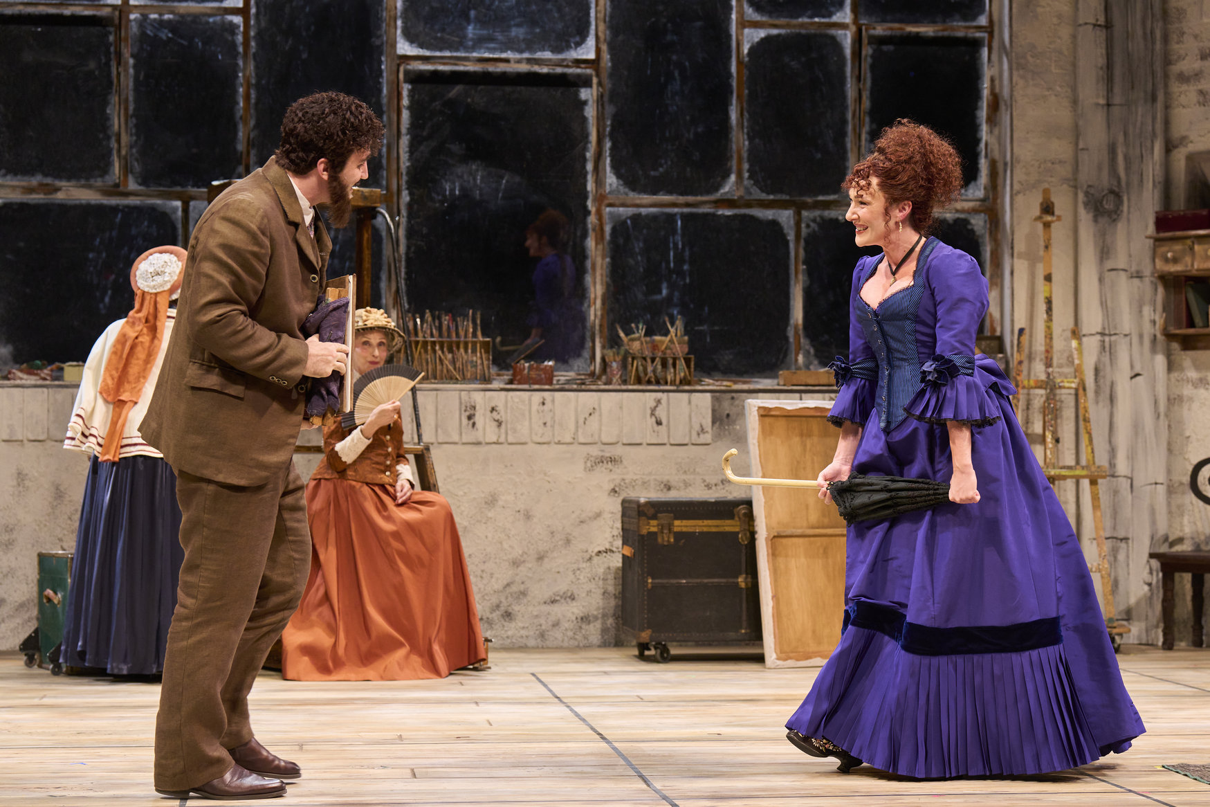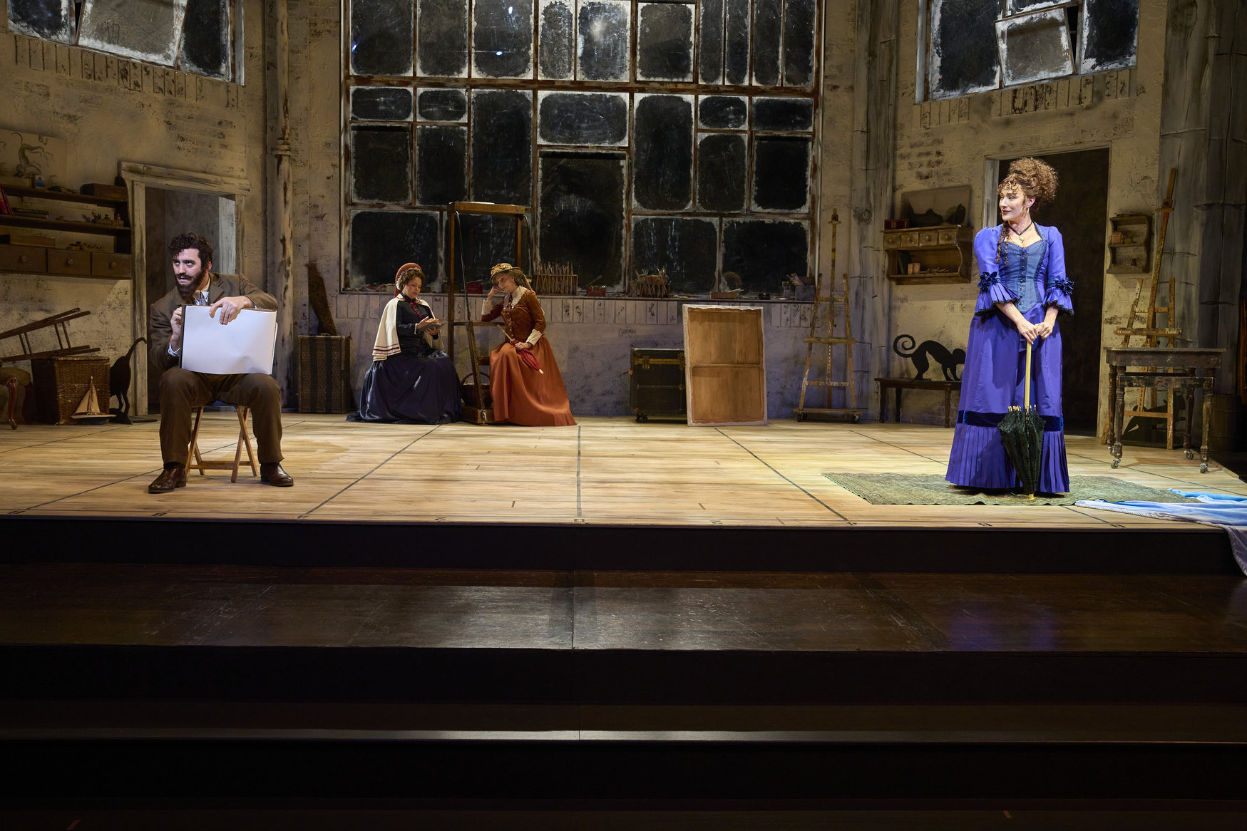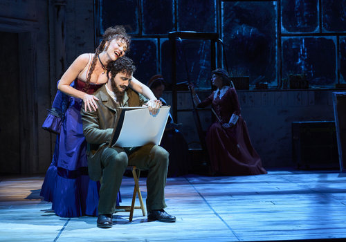 Dot (actor, Jillian Kates*) lovingly admires George (actor, Alex Syiek*) and his work in the Great Lakes Theater production of Sunday in the Park with George at the Hanna Theatre, Playhouse Square, running through October 12. Also featured, Jessie Cope Miller* and Laura Perrotta* (Photo by Roger Mastroianni)