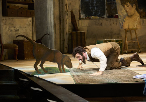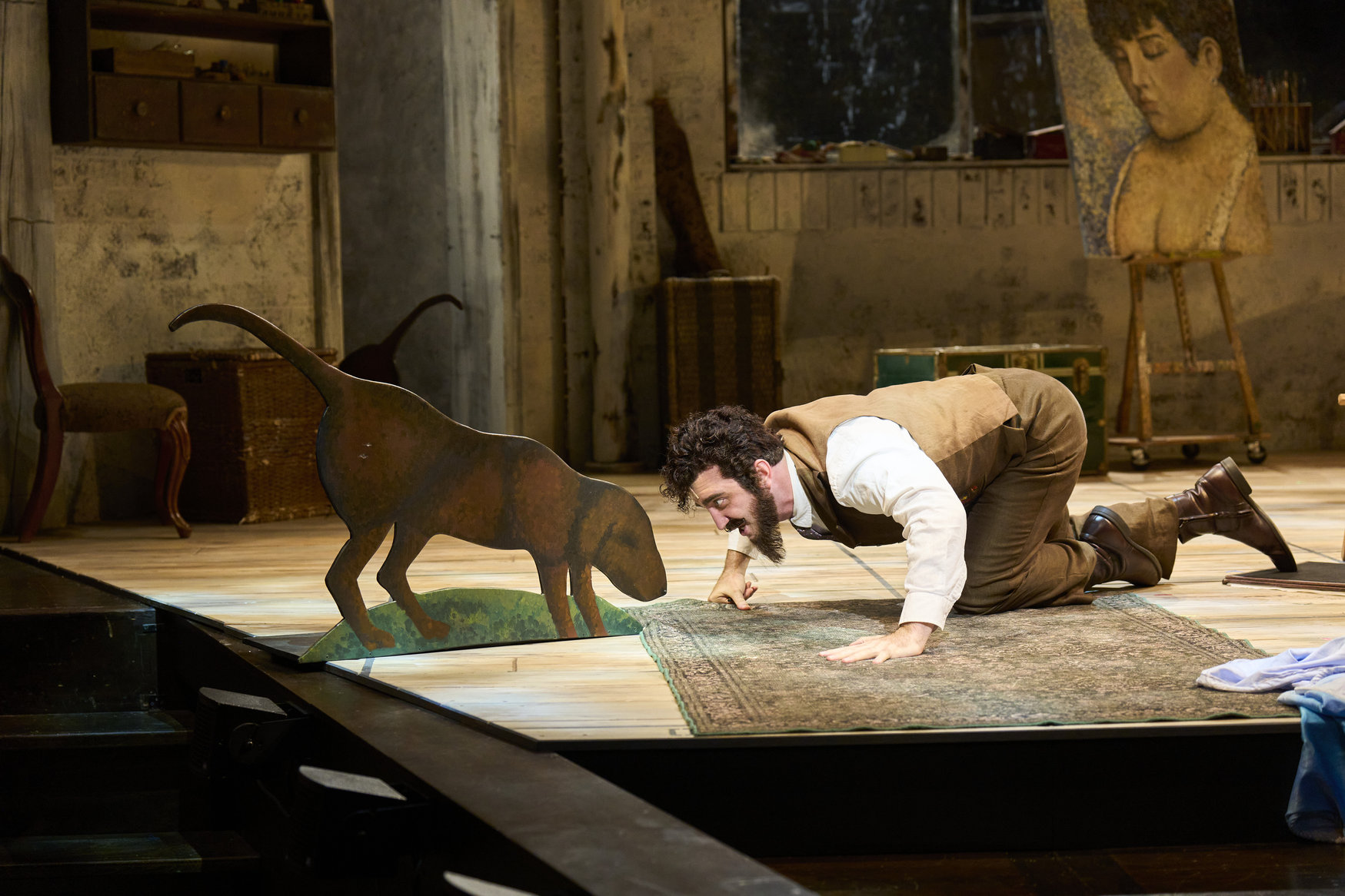 George (actor, Alex Syiek*) makes a friend in the Great Lakes Theater production of Sunday in the Park with George at the Hanna Theatre, Playhouse Square, running through October 12. (Photo by Roger Mastroianni)
