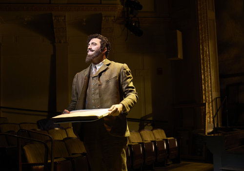 George (actor, Alex Syiek*) finishes a sketch in the Great Lakes Theater production of Sunday in the Park with George at the Hanna Theatre, Playhouse Square, running through October 12. (Photo by Roger Mastroianni)