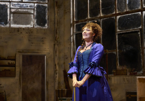 Dot (actor, Jillian Kates*) admires herself in the Great Lakes Theater production of Sunday in the Park with George at the Hanna Theatre, Playhouse Square, running through October 12. (Photo by Roger Mastroianni)