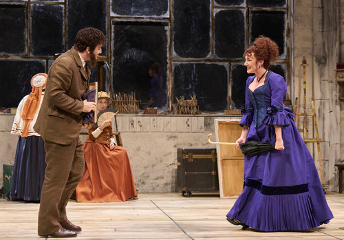 Dot (actor, Jillian Kates*) confronts George (actor, Alex Syiek*) in the Great Lakes Theater production of Sunday in the Park with George at the Hanna Theatre, Playhouse Square, running through October 12. (Photo by Roger Mastroianni)