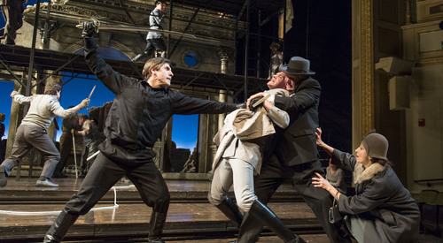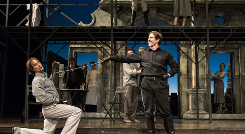 Is it possible that the world we live in today has become too dangerous to serve as a backdrop even for this play? We may risk overwhelming the play with too direct a reference to our own experience. Shakespeare’s technique is to create distance from the events of his day by choosing well-known stories set in exotic lands and allowing the audience to connect the dots. Our work on Shakespeare’s plays often leads us to draw a comparison with something we recognize but still have some theatrical distance from, a simile that helps underscore what we find potent or relevant for our audience. The simile gives the director and the design team (and, ultimately, the acting company) a common point of reference, an anchor in the sea of decisions that must be made when creating a production. Sometimes, the point of reference is a specific historical moment (our recent production of The Taming of the Shrew is an example). Other times we refer to a set of conventions or stylistic devices we believe appropriate to the play (Japanese theatrical conventions in our Macbeth). In every case, our success or failure is measured not by the cleverness of the simile but by the experience our audience has of the play.