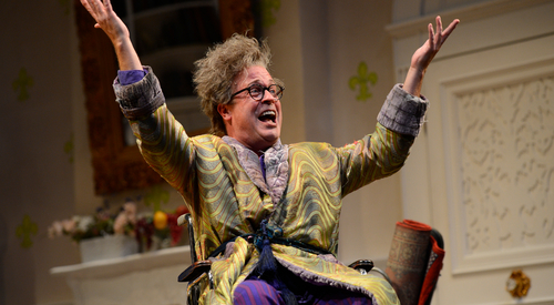 When I was invited to re-envision Molière’s Le Malade imaginaire, I wondered how my background in Italian commedia dell’arte—a theatrical form by and for everyday people—might inform this French Renaissance play written for Louis XIV. Molière was deeply committed to his patron and separated each act in the play with 17th-century “production numbers” or divertissement, which praised Louis and his brilliance. Could I find a contemporary confluence of the populist aspects of commedia and the over-the-top gilding of the French Baroque? And would a commedia filter serve to illuminate this story of a man so blindly obsessed with his perceived illness that he loses sight of what truly matters?