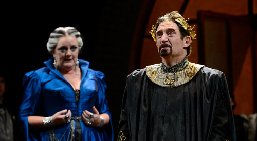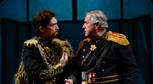 King Leontes of Sicilia begs his childhood friend, King Polixenes of Bohemia, to extend his visit to Sicilia. Polixenes protests that he has been away from his kingdom for nine months, but after Leontes’s pregnant wife, Hermione, pleads with him he relents and agrees to stay a little longer. Leontes, meanwhile, has become possessed with jealousy. Convinced that Polixenes and Hermione are lovers, he orders his loyal retainer, Camillo, to poison the Bohemian king. Instead, Camillo warns Polixenes of what is afoot, and the two men flee Sicilia for Bohemia.