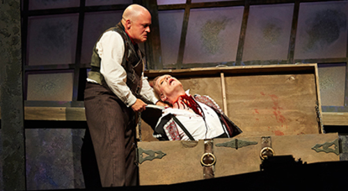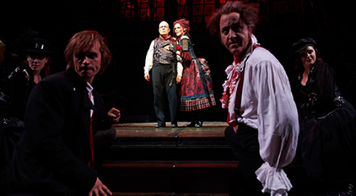 At its heart, Sweeney Todd is an eerily romantic gothic love story. Sweeney is a man lost in time, forever haunted by his beautiful Lucy while Mrs. Lovett longs for—and iswilling to do anything for—a love she never had. The world of our production draws inspiration from Victorian penny dreadfuls to German expressionist horror films all the way to steam punk; we’ve created our own very special recipe especially for you—attend the tale of Sweeney Todd!