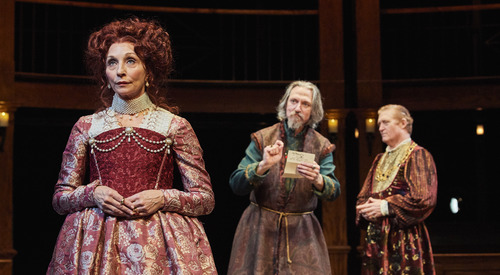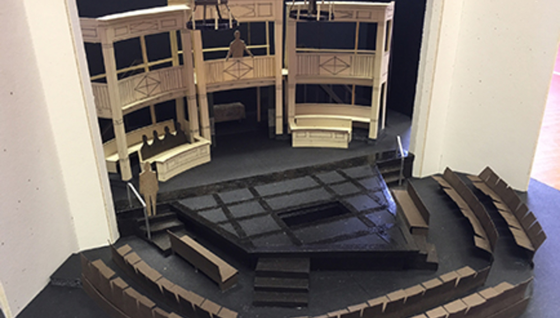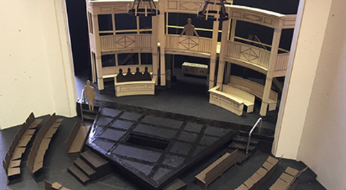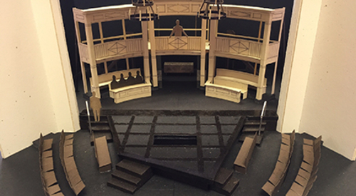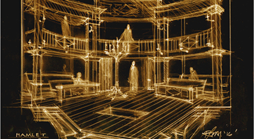 We have chosen to set Hamlet in the Elizabethan period for several reasons. Foremost is our desire to create a stage structure similar to that of the Globe Theatre in which Hamlet was performed. Our scenic design will allow part of the audience to sit onstage, surrounding the actors, as well as on either side of the platform downstage. With this choice we are inviting the audience onstage to create a sense of participation in the action of the play. For those sitting onstage the experience may feel like being in the play rather than passively watching the play. For those sitting in the traditional location in front of the stage, the audience onstage will appear to be in the play – like a jury in a court room judging the events as they unfold. The stage side seating works to increase the pressure of the audience in relationship to the action onstage.