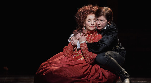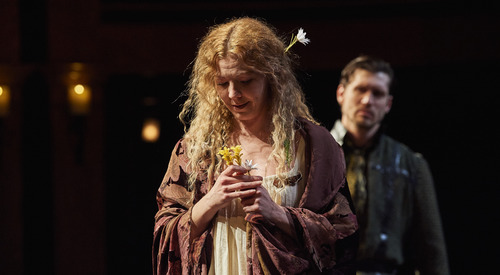 Hamlet’s relationship to his mother, Gertrude, and his “beloved” Ophelia, are deeply troubling, both to him and to most modern audiences. His sense of betrayal by both women—first by his mother for marrying his uncle (an act that he views as adulterous and incestuous); and then by Ophelia, for giving back his love letters and tokens—seem to infect his view of all women: “Frailty, thy name is woman.” But his cruelty toward Ophelia is contradicted by his professed love for her. The first time we see Hamlet speak to Ophelia his words are fraught with ambiguity: “I did love you once,” he says, only to follow with, “You should not have believed me . . . I loved you not.” What are we in the audience to believe? Is this madness? Or is Hamlet feigning madness? Or, as the noted Shakespearean scholar, Harold Bloom asserts: “The question of Hamlet must always be Hamlet himself, for Shakespeare created him to be as ambivalent and divided a consciousness as a coherent drama could sustain.” Perhaps casting two actors as different as Laura Berg and Jonathan Dyrud are, is an acknowledgment of Hamlet’s divided soul.