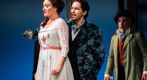 In the meantime, Sebastian has been rescued by a sea captain, Antonio. When Viola, as Cesario, is challenged to a duel, Antonio mistakes her for Sebastian, comes to her aid, and is arrested. Olivia, meanwhile, mistakes Sebastian for Cesario and declares her love. When, finally, Sebastian and Viola appear together, the puzzles around the mistaken identities are solved: Cesario is revealed as Viola, Orsino asks for Viola’s hand, Sebastian will wed Olivia, and Viola will marry Count Orsino. Malvolio, blaming Olivia and others for his humiliation, vows revenge.