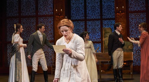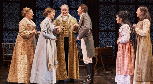 Pride and Prejudice is a perfectly written novel, one that is “sacred” to legions of readers. I initially went into the project enthusiastically, but with the dispiriting fear that anything that we changed as we envisioned it for the stage would inevitably make it less perfect, disappoint Austen’s zealous fans and worse, betray the author. A freeing revelation came when I discovered that Austen and her family were great lovers of the theater. Jane wrote and staged “theatricals” at home, attended plays in London and Bath at every opportunity, seeing some productions multiple times, and her letters are full of her reactions to the plays and players she liked and didn’t. With this thought in mind, I approached the writing imagining that she had always intended the story to be on stage and her perfect novel was a few hundred pages of extraordinarily detailed notes for a play that she intended to write but never got to, and that we had her blessing and the freedom to search out the play in these notes, editing, rearranging, and occasionally inventing details, so long as we remained faithful to her characters and journeys.