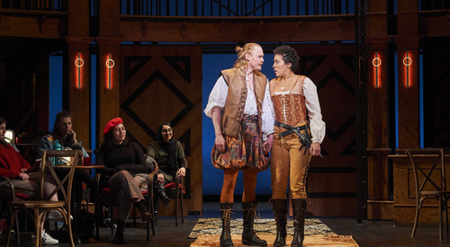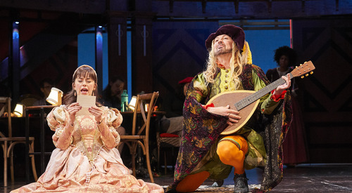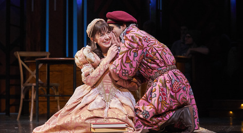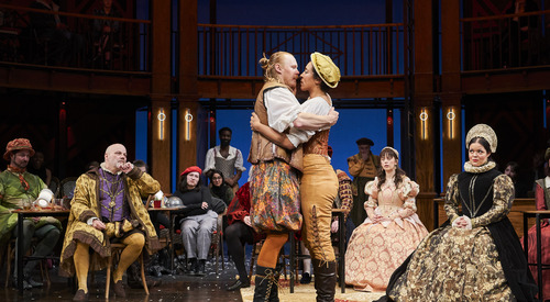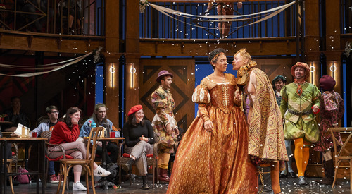 Meanwhile, Lucentio gets close to Bianca by disguising himself as a tutor. His servant impersonates him and outbids the other suitors. Lucentio’s gambit wins her heart and her father’s permission. They are married and Petruchio and Katherine travel to celebrate their nuptials. The men bet on which of their wives are most obedient and the answer (delightfully) surprises everyone.