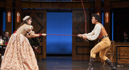 Over time the play became harder for me to reconcile and it’s not that the play changed, my lens did. So here we are again, standing toe to toe in a moment when cultural context seems to raise the stakes more than ever. These plays have endured not because they offer solutions, but because they ask the right questions- so maybe right now is the exact moment for Taming. No, we do not live in Shakespeare’s world of dowries, deals over daughters, stringent social strata and limited mobility for women but, we are on its continuum. Down the road 400 years, and we are still operating in relationship to it. In some ways we’ve come so far, in other ways…well, I’ll let you wrestle with that. If our job is to hold up the mirror, it is our duty to do it from every angle, even the unflattering ones.