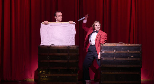 Mix a Hitchcock masterpiece with a juicy spy novel, add a dash of Monty Python and you have this fast-paced, madcap whodunit for anyone who loves the magic of theater! This two-time Tony and Drama Desk Award-winning treat is packed with nonstop laughs, over 150 zany characters (played by a ridiculously talented cast of four), an onstage plane crash, handcuffs, missing fingers, and some good old-fashioned romance!