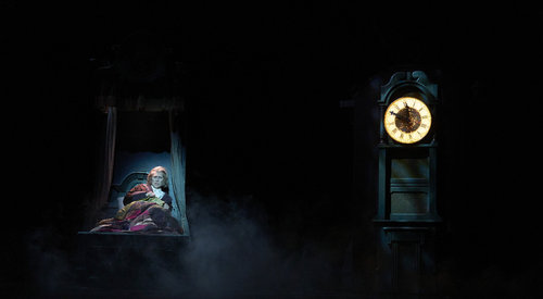 The three Spirits are each larger than life and haunting for different reasons. I see the Ghost of Christmas Past as benevolent: Scrooge first does not want to deal with the past, which serves as a painful reminder of what he has lost, but it is familiar and potentially warm.
